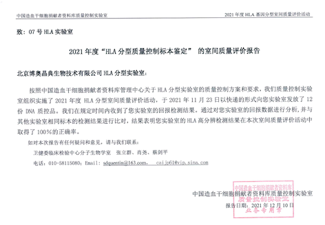 ? ? ? 博奧晶典HLA分型檢測實驗室自2006年正式為中華骨髓庫提供分型檢測服務(wù)起,至今已與骨髓庫合作超過15年,因出眾的質(zhì)量優(yōu)勢、技術(shù)優(yōu)勢、服務(wù)優(yōu)勢,連續(xù)多年在骨髓庫組織的2%抽檢中取得100%準(zhǔn)確率,并多次榮獲骨髓庫頒布的“先進(jìn)實驗室”、“優(yōu)秀合作實驗室”等榮譽(yù)稱號。