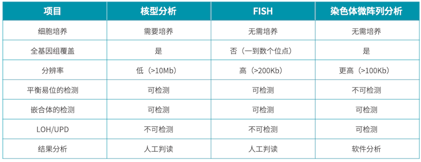 臨床常用細(xì)胞遺傳學(xué)診斷技術(shù)比較