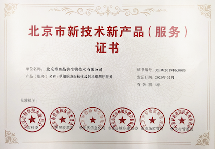 “北京市新技術(shù)新產(chǎn)品(服務(wù))認(rèn)定”旨在推動(dòng)高新技術(shù)產(chǎn)業(yè)的發(fā)展,作為北京市新技術(shù)新產(chǎn)品,應(yīng)擁有自主知識(shí)產(chǎn)權(quán),并具有技術(shù)先進(jìn)性和創(chuàng)新性。本次喜獲“單細(xì)胞表面抗體及轉(zhuǎn)錄組測(cè)序服務(wù)”榮譽(yù)證書(shū)是各委員會(huì)對(duì)博奧晶典單細(xì)胞產(chǎn)品及服務(wù)創(chuàng)新能力的肯定,同時(shí)體現(xiàn)了博奧晶典單細(xì)胞產(chǎn)品服務(wù)在行業(yè)內(nèi)的技術(shù)優(yōu)勢(shì)。