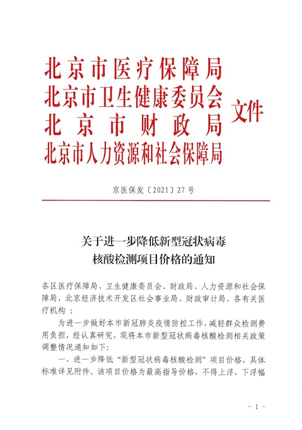 公示:關(guān)于進(jìn)一步降低新型冠狀病毒核酸檢測項(xiàng)目價格的通知