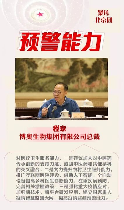 在調(diào)研過程中,程京代表了解到,隨著經(jīng)濟(jì)社會發(fā)展、收入水平的提高,廣大群眾越來越重視疾病的預(yù)防。程京代表提出建議:建“治未病”國家體系,保人民健康和國家強(qiáng)盛。