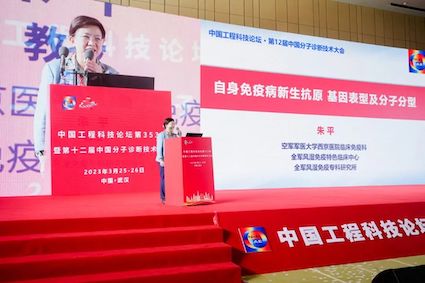 空軍軍醫(yī)大學(xué)西京醫(yī)院臨床免疫科主任醫(yī)師、全軍風(fēng)濕免疫??蒲芯克L(zhǎng)朱平教授作了題為《自身免疫病新生抗原,基因表型及分子分型》的報(bào)告。目前,強(qiáng)直性脊柱炎(ankylosing spondylitis,AS)等慢性自身免疫性疾病新生抗原形成的機(jī)制尚不清楚。朱平教授團(tuán)隊(duì)通過開放式質(zhì)譜檢測(cè)系統(tǒng)篩選鑒定到與AS相關(guān)的蛋白翻譯后修飾——半胱氨酸羧基乙基化修飾,證實(shí)ITA2B@C96car是相關(guān)分型自身免疫性疾病患者的重要發(fā)病機(jī)制,為修飾新生抗原相關(guān)自身免疫病的病因?qū)W研究提供了實(shí)驗(yàn)證據(jù)和重要研究思路。此外,朱平教授團(tuán)隊(duì)系統(tǒng)分析患者HLA分型、代謝狀態(tài)、新生抗原及特異性自身抗體水平,破解了自身免疫病“環(huán)境-代謝物-新修飾-新抗元”致病分子新機(jī)制,對(duì)建立AS等免疫病自身抗原特異性篩查和針對(duì)性治療策略具有重大意義探索。