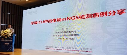 蚌埠醫(yī)學院第一附屬醫(yī)院主任醫(yī)師張永教授作了題為《呼吸ICU中微生物mNGS檢測病例分享》的主題報告。張永教授通過兩例ICU臨床病例深入淺出的向聽眾展示了mNGS檢測在疑難危重病診斷中的巨大價值。兩位病例均是因不明病原感染,出現(xiàn)高熱、呼吸困難及肺彌漫性感染等嚴重臨床癥狀轉(zhuǎn)入ICU科。通過培養(yǎng)和免疫等常規(guī)診斷方法均未能明確病因,只能給予經(jīng)驗性治療。改用mNGS檢測后,分別檢測出臨床罕見的致病菌腎臟鉤端螺旋體和惠普爾養(yǎng)障體,結(jié)合患者接觸史或臨床表現(xiàn),確診致病菌。針對致病菌種,對癥用藥,兩位患者得已快速治愈。