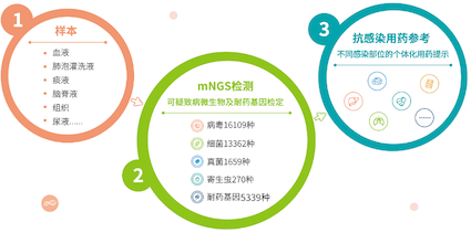 MAPMI®(Metagenomic Analysis Pipeline for Microbial Identification)技術(shù)是博奧晶典基于自主的BES4000高通量測序平臺研發(fā)的超廣譜病原體篩查技術(shù),覆蓋3.2萬種的病原微生物及5339種耐藥基因,可直接對樣本中的核酸進(jìn)行檢測,快速、精準(zhǔn)的獲得樣本中微生物序列信息,可對病原體的變異情況進(jìn)行進(jìn)一步追蹤監(jiān)控,在新發(fā)、突發(fā)重大疫情的監(jiān)控及快速反應(yīng)體系構(gòu)建上具有重大現(xiàn)實(shí)意義。同時(shí),基于檢測結(jié)果及患者臨床特征,對可疑致病微生物按照不同感染部位提供個(gè)體化用藥提示,實(shí)現(xiàn)感染性疾病的診斷、用藥全流程診療。