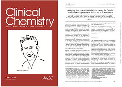 基于全新一代先進(jìn)的芯片實驗室(Lab-on-a-chip)設(shè)計理念,化繁為簡,檢測時僅需將樣本保存液加入芯片,封閉芯片后即可上機,手工操作小于1分鐘。生物反應(yīng)全程(包括核酸提取、核酸純化、擴(kuò)增反應(yīng)、核酸檢測和結(jié)果判讀等)均集成在一個整體密閉、內(nèi)部分區(qū)的微流控芯片內(nèi),由全自動核酸分析儀完成,因此無需專業(yè)分區(qū)實驗室,無需人工干預(yù),最大程度降低操作人員感染及樣本間交叉污染的風(fēng)險。35-45分鐘完成實驗全過程,檢測靈敏度可達(dá)150拷貝/毫升,相關(guān)成果在國際檢驗醫(yī)學(xué)界權(quán)威雜志Clinical Chemistry上發(fā)表。