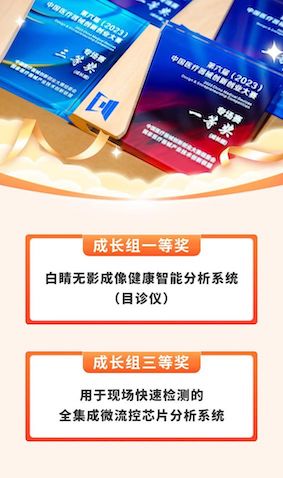 經(jīng)過初賽、復(fù)賽的層層選拔,來自全國的30余支優(yōu)勝團(tuán)隊從逾百個報名的優(yōu)質(zhì)創(chuàng)新項目中脫穎而出,入圍決賽。其中“白睛無影成像健康智能分析系統(tǒng)(目診儀)”和“用于現(xiàn)場快速檢測的全集成微流控芯片分析系統(tǒng)”成功突圍,榮獲成長組一等獎和三等獎的殊榮。 此次獲獎是對我們產(chǎn)品創(chuàng)新和研發(fā)實力的充分認(rèn)可及肯定。