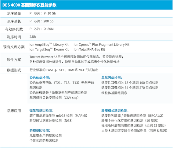 晶芯®BioelectronSeq 4000 基因測序儀(簡稱 BES 4000)是由博奧與美國 Thermo Fisher 公司合作在國內(nèi)研發(fā)、生產(chǎn)的新一代高通量測序儀。該款測序儀采用半導(dǎo)體芯片測序技術(shù),結(jié)合臨床檢測試劑盒和自動化分析軟件,適合用于醫(yī)院獨(dú)立開展基因檢測工作。BES 4000 已于 2015 年 2 月獲得 CFDA 醫(yī)療器械注冊證(醫(yī)療器械注冊證號:國械注準(zhǔn) 20203220502)。