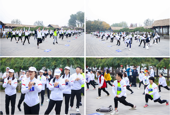 越野拉力賽前,所有參賽選手于通州大運河東岸漕運碼頭休息長廊廣場集合進行賽前熱身,通過熱身提升關節(jié)靈活性,降低可能帶來的運動損傷風險。