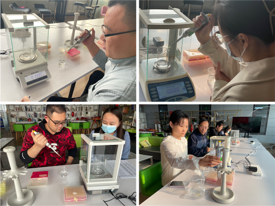 實(shí)操競(jìng)賽環(huán)節(jié),主要將理論與實(shí)踐相結(jié)合,考驗(yàn)實(shí)驗(yàn)員移液器操作技能:分別取3次液體進(jìn)行稱量,考核移液器使用的重復(fù)性、準(zhǔn)確性及儀器操作是否規(guī)范。